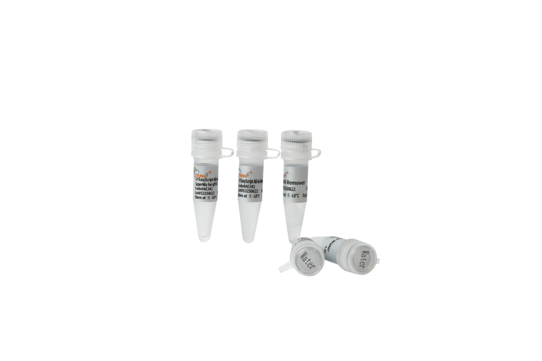 本產(chǎn)品含有反轉(zhuǎn)錄反應(yīng)所需的全部試劑(EasyScript? RT, RNase Inhibitor, Anchored Oligo(dT)18 Primer, Random Primer(N9), dNTPs, Buffer),濃度為5×。反應(yīng)時(shí),只需加入gDNA Remover、模板RNA和水即可高效地合成第一鏈cDNA,同時(shí)去除RNA模板中殘留的基因組DNA。另配有5×EasyScript? All-in-One No-RT Control SuperMix for qPCR,用于配制無反轉(zhuǎn)錄酶的對(duì)照,判斷qPCR模板是否來自cDNA。該產(chǎn)品操作簡便,降低操作過程中的污染機(jī)率。cDNA只適用于qPCR,不適用于常規(guī)PCR。